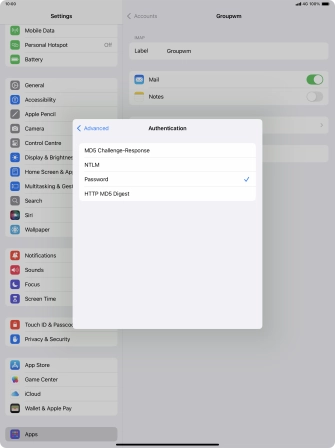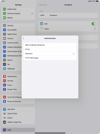 Press Password and key in the password for your email account.