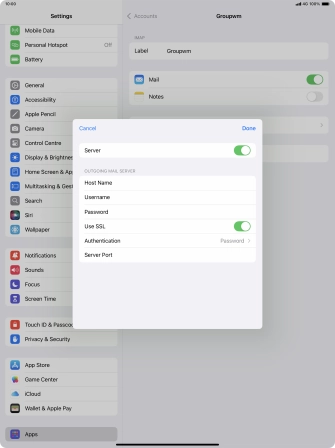 Press Password and key in the password for your email account. Please note that if you're using Vodafone's outgoing server, leave the password field empty.
