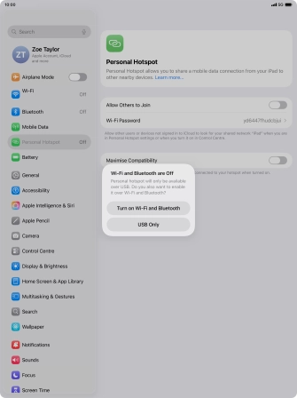 Use your Apple iPad Air 13-inch (M2) iPadOS 26 as a personal hotspot