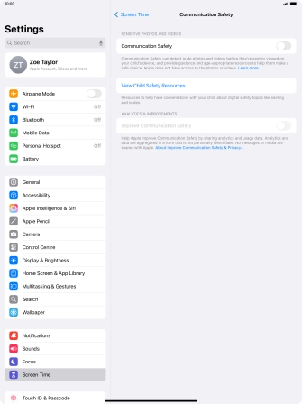 Turn Communication Safety on your Apple iPad Air 13 (M3) (2025) iPadOS 18 on or off
