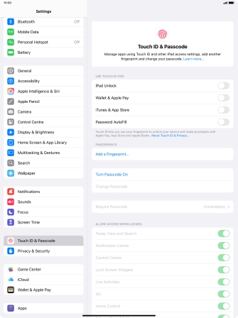 You can use your fingerprint to turn off the lock code, allow access to apps and authorise payments.