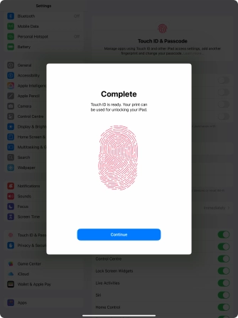 Press Continue. If you haven't previously selected a lock code, key in a code of your own choice twice.