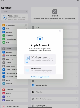 Activate Apple ID on your Apple iPad Air 13 (M3) (2025) iPadOS 18