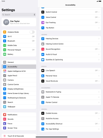 You can select different settings for tablet interaction control, e.g. AssistiveTouch, Voice Control and Eye Tracking making it easier to navigate your tablet.