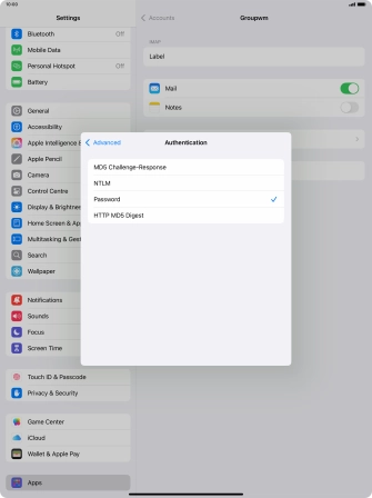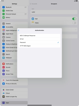 Press Password and key in the password for your email account.