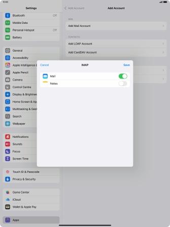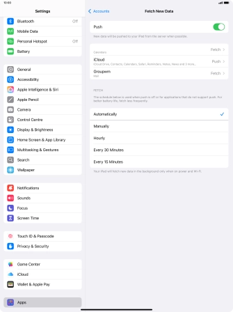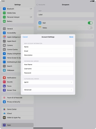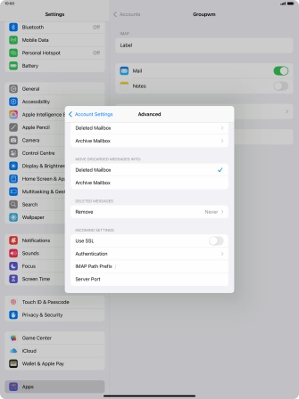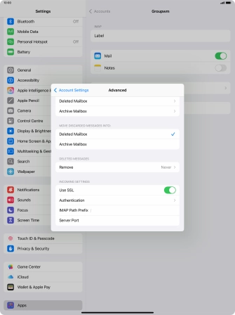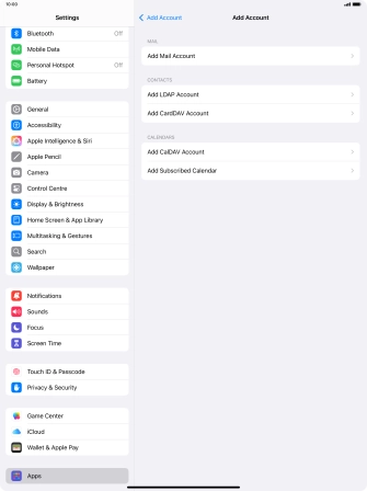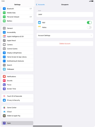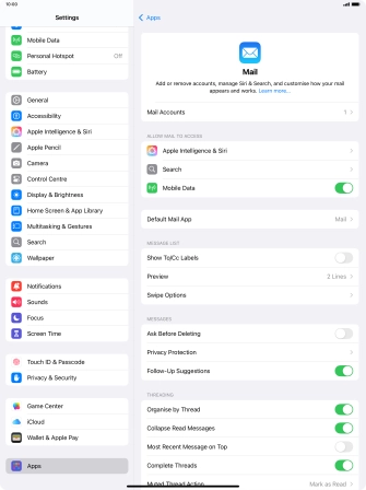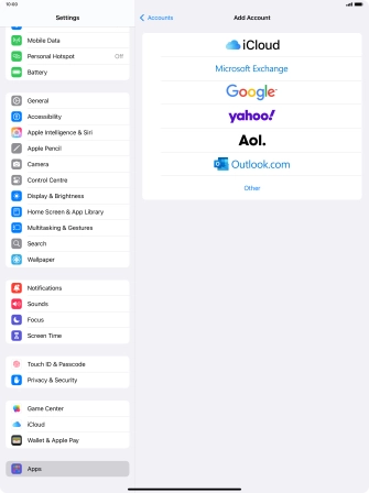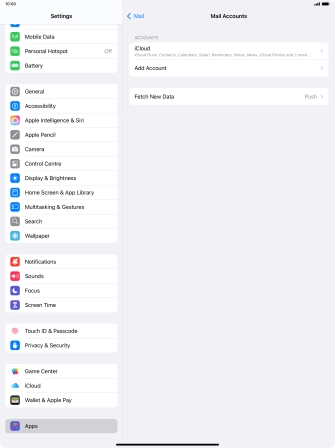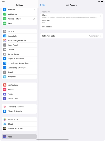 Press the required email account and follow the instructions on the screen to select settings for the specific account.