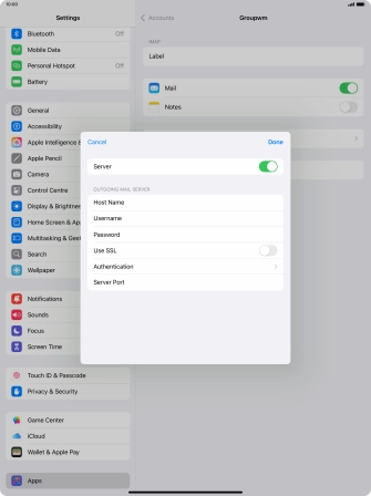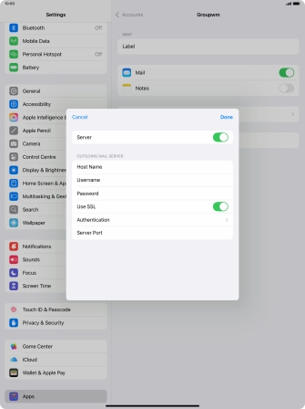 Press Username and key in the username for your email account. Please note that if you're using Vodafone's outgoing server, leave the username field empty.