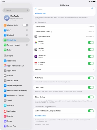 Turn Wi-Fi Assist on your Apple iPad Air 13 (M3) (2025) iPadOS 26 on or off