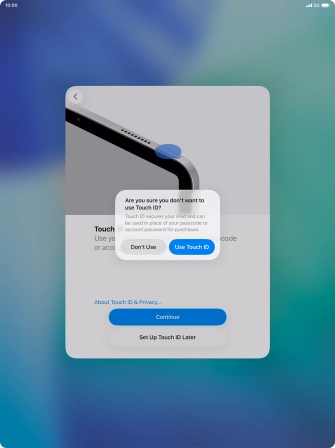 Follow the instructions on the screen to turn on use of Touch ID or press Set Up Touch ID Later.