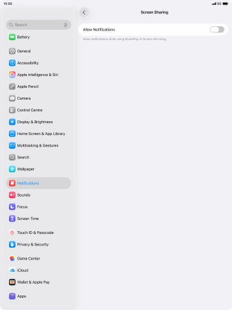 You can turn display of notifications when using SharePlay or Screen Mirroring on or off.