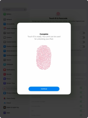 Press Continue. If you haven't previously selected a lock code, key in a code of your own choice twice.