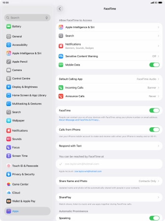 Press the required setting below "Allow FaceTime to Access" and follow the instructions on the screen to allow access for specific apps and functions.