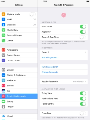 Press the indicator next to "iPad Unlock" to turn the function on or off.