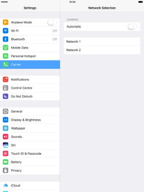 Press the indicator to turn automatic network selection on or off.