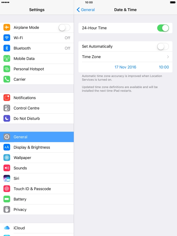2 Turn on automatic update of time zone, time and date.