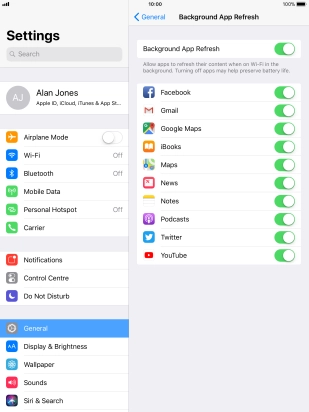 Press the indicator next to "Background App Refresh" to turn the function on or off.