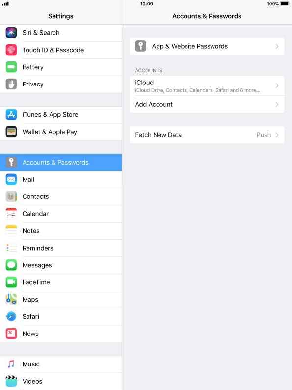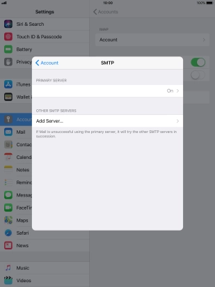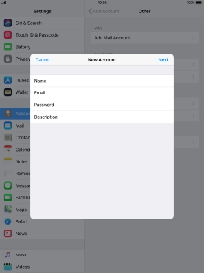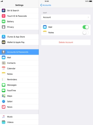 Press the required email account and follow the instructions on the screen to select settings for the specific account.