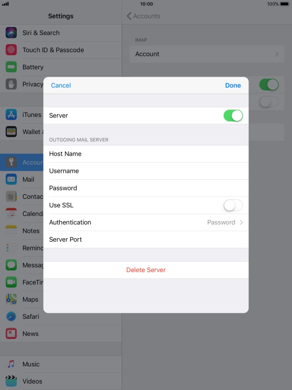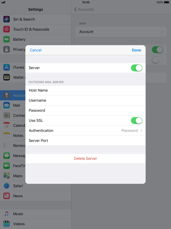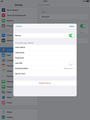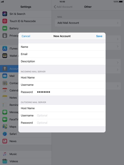 Press Password and key in the password for your email account. Please note that if you're using Vodafone's outgoing server, leave the password field empty.