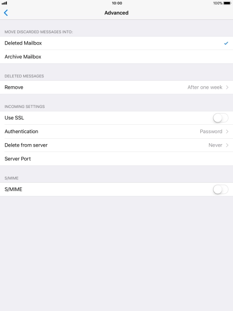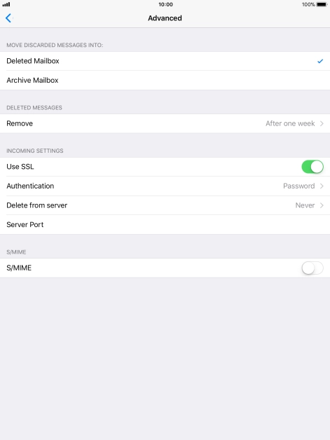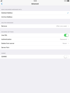 Press the required email account and follow the instructions on the screen to select settings for the specific account.