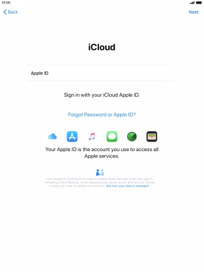 Press the field next to "Apple ID" and key in the username for your Apple ID.