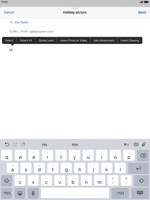 Press Send when you've finished your email message.