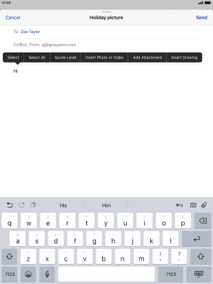 Press the text input field and write the text for your email message.