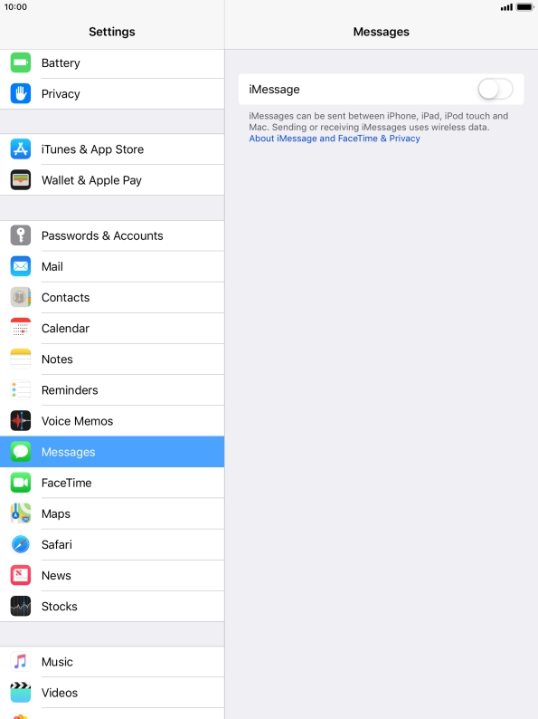 I can't send and receive iMessages on my Apple iPad Air 2 iOS 12.0