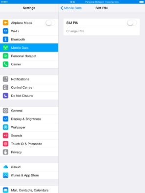 Press the indicator next to "SIM PIN" to turn the function on or off.