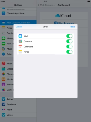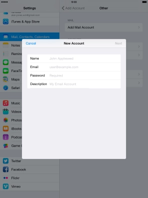If this screen is displayed, you email account has been recognised and set up automatically. Follow the instructions on the screen to key in more information and finish setting up your tablet.