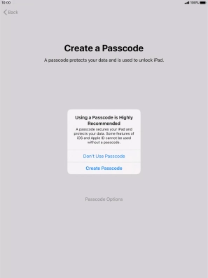 Follow the instructions on the screen to turn on use of lock code or press Don't Use Passcode.