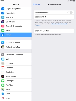 Press the indicator next to "Location Services" to turn the function on or off.