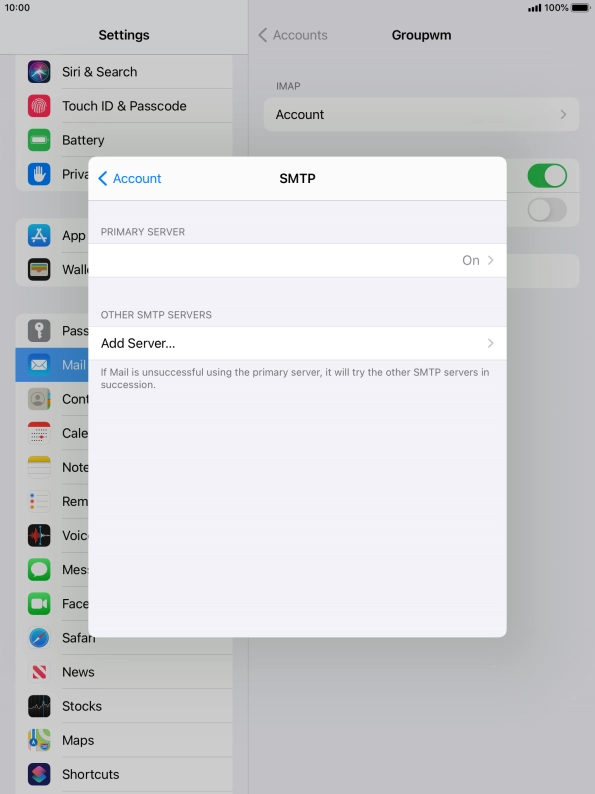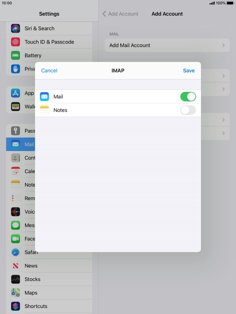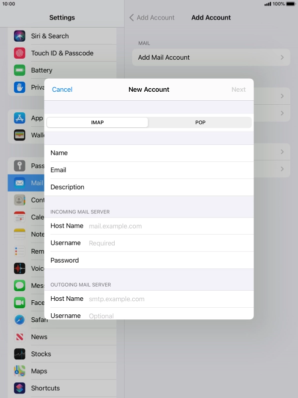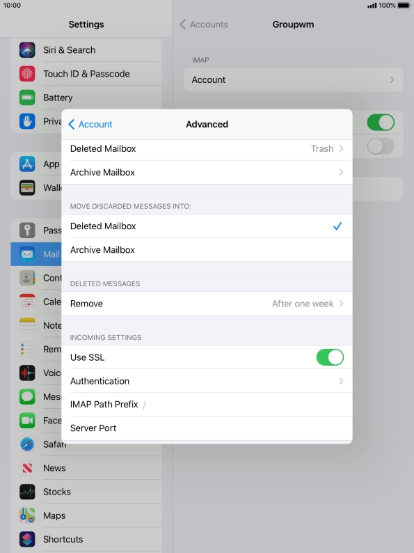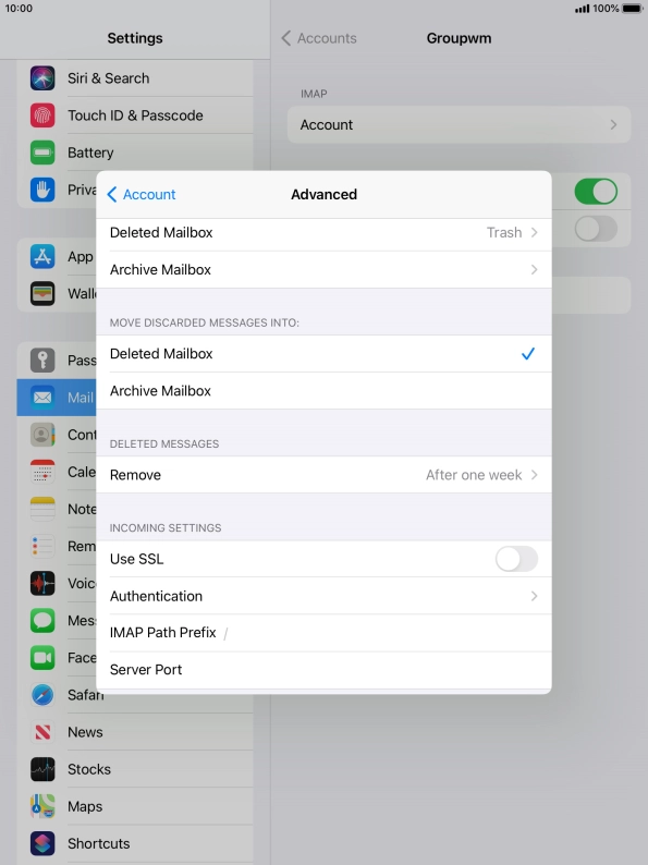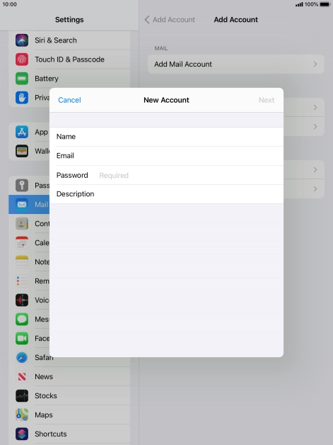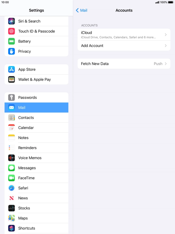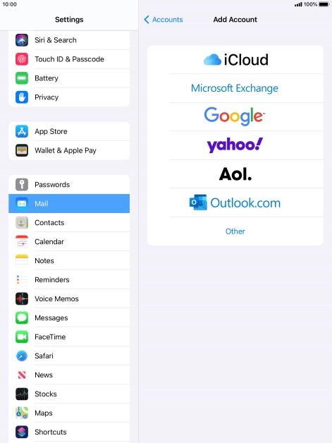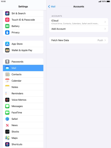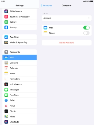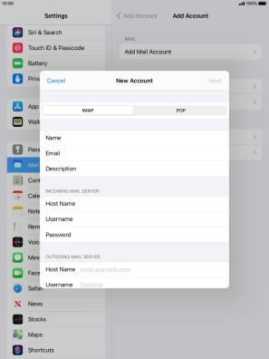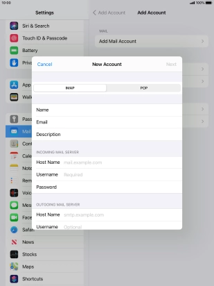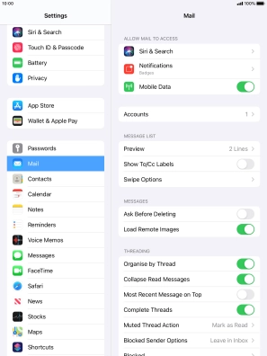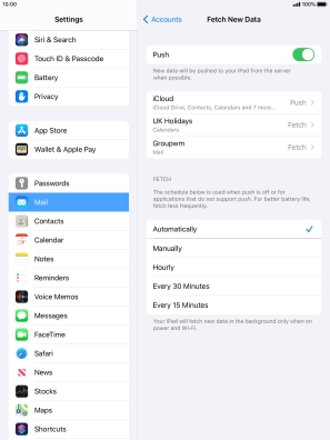 Press the required email account and follow the instructions on the screen to select settings for the specific account.