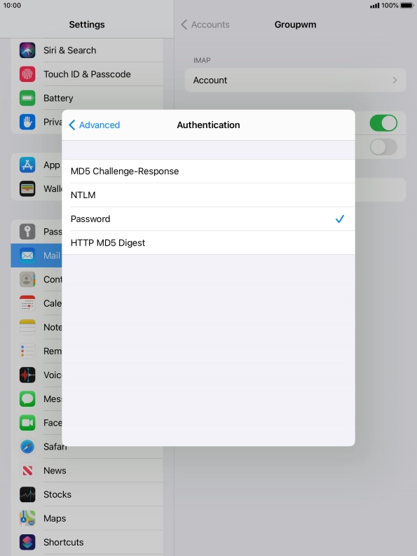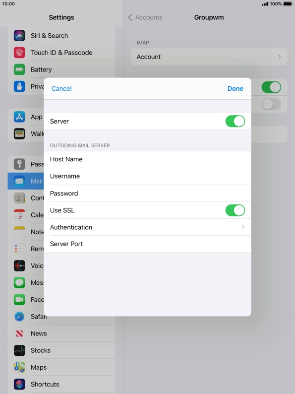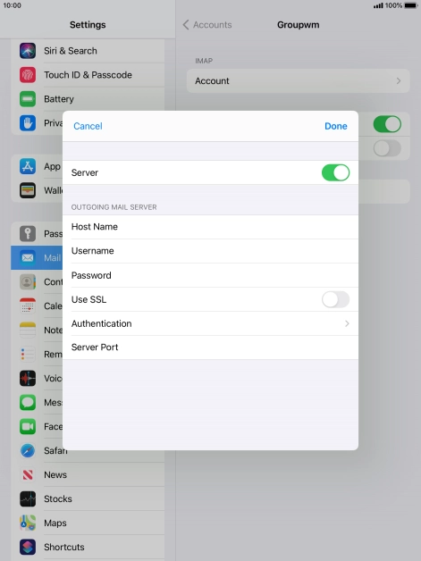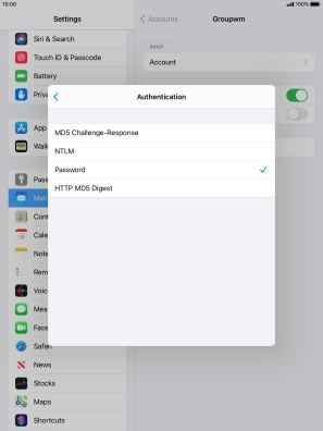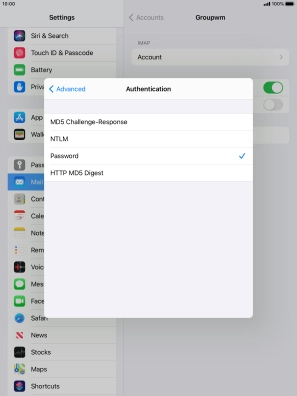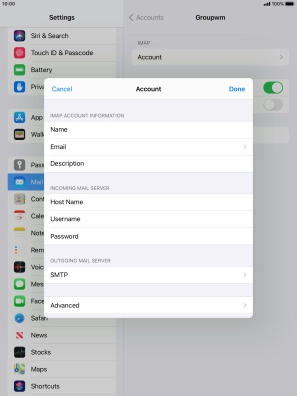 Press Password and key in the password for your email account. Please note that if you're using Vodafone's outgoing server, leave the password field empty.