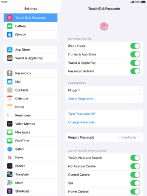 Press the indicator next to "iPad Unlock" to turn the function on or off.