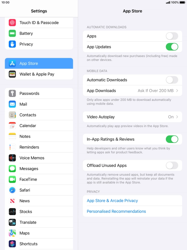 Press the indicator next to "Automatic Downloads" to turn the function on or off.