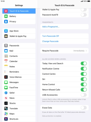 Press Turn Passcode On and key in a lock code of your own choice twice.