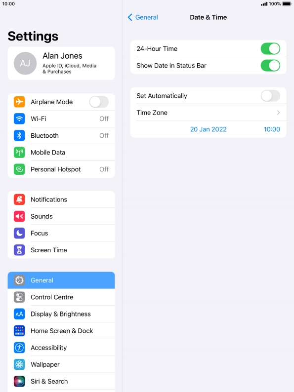 To send and receive iMessages, time zone, date and time need to be correctly set on your tablet.