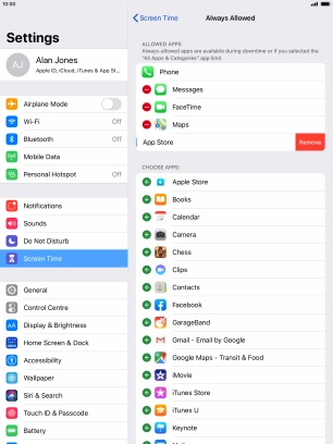 Press the remove icon next to the required app to remove it from the list of allowed apps during Downtime.