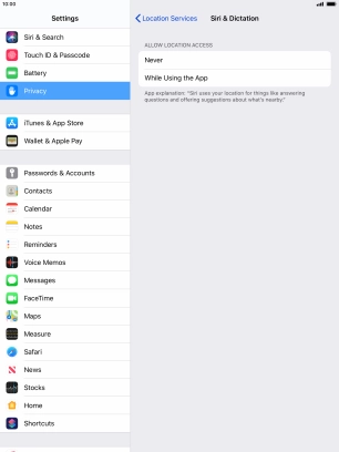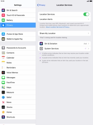 Turn GPS on your Apple iPad Air (2019) iPadOS 13.2 on or off