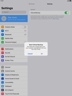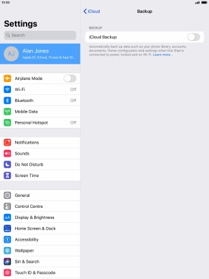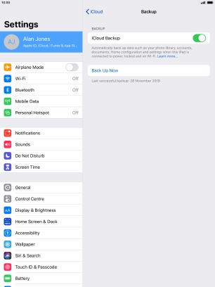 Back up the memory on your Apple iPad Air (2019) iPadOS 13.2 to iCloud
