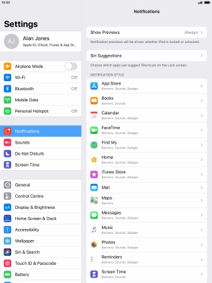 To select notification preview only when your tablet is unlocked, press When Unlocked.