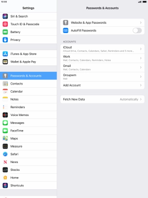 Copy contacts from social networks and email accounts to your Apple iPad Air (2019) iPadOS 13.2