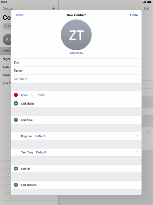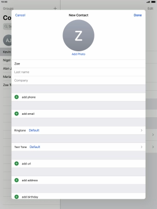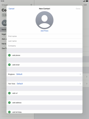 Create contact on your Apple iPad Air (2019) iPadOS 13.2