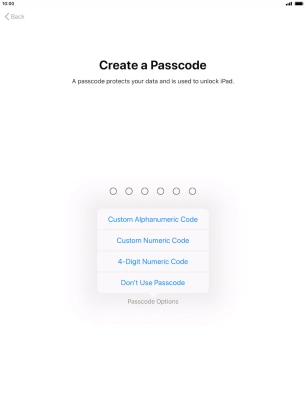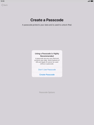 Follow the instructions on the screen to turn on use of lock code or press Don't Use Passcode.