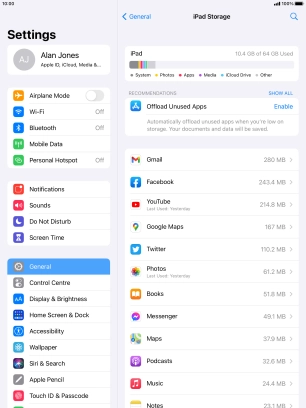 Press iPad Storage.