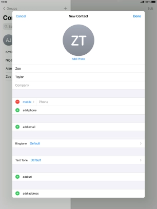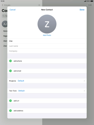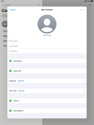 Create contact on your Apple iPad Air (2019) iPadOS 14.0