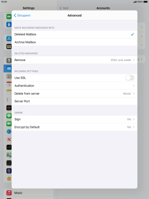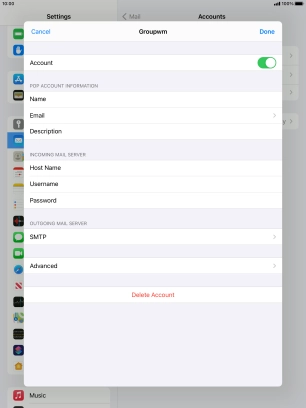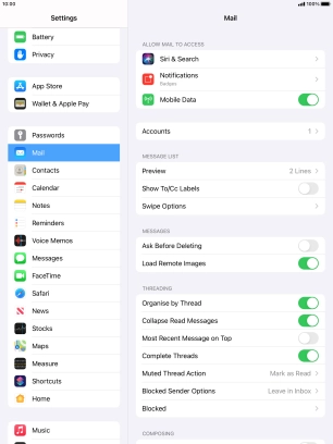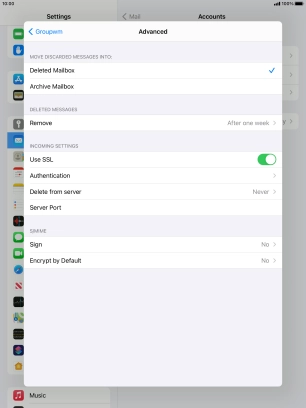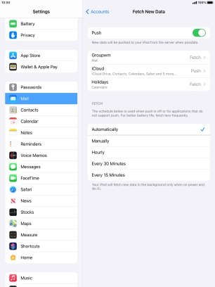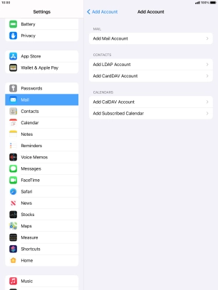 Press the required email account and follow the instructions on the screen to select settings for the specific account.