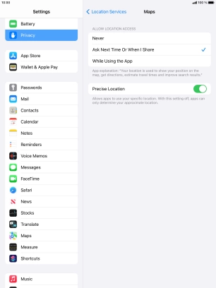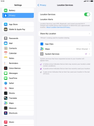Turn GPS on your Apple iPad Air (2019) iPadOS 15.2 on or off