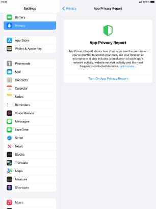 Press the indicator next to "Turn On App Privacy Report" to turn on the function.