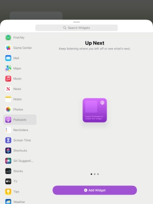If the required widget is not displayed on the list, press the search field and follow the instructions on the screen to find the required widget.